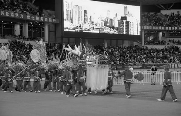 不只在景区,高淳还把“热闹”搬进了南京奥体中心。日前,一场精心策划的“高淳文化奇袭”惊艳赛场。赛前,魔性螃蟹舞点燃奥体广场球迷热情,年轻人纷纷加入,一起“横着走”;中场时分,东坝大马灯步伐铿锵,尽显千年民俗的厚重风骨;高淳板龙盘旋腾跃,舞动出非遗传承的鲜活神韵;武术少年挥拳起势,挥洒着自强不息的蓬勃朝气。61355名观众看到的不仅是一场表演,更是一个有血有肉、有故事、有态度的新高淳。